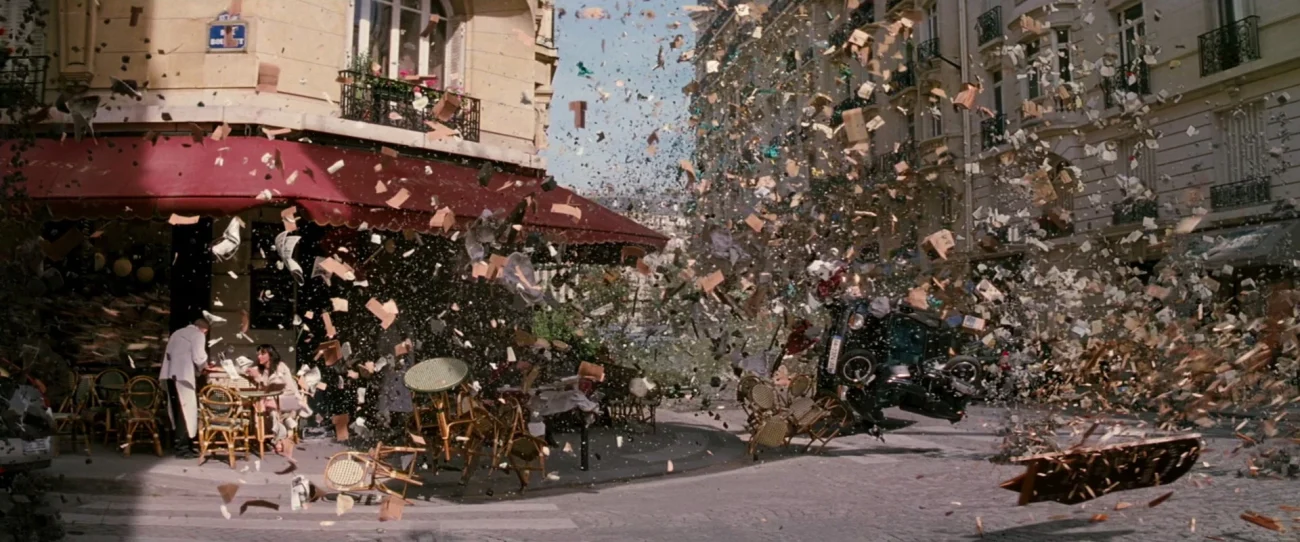 Во время съемок сцены сна в парижском кафе, детали, такие как чашки и разбитое стекло, не совсем совпадают от кадра к кадру. Вещи тонко меняются – чашка может повернуться, или осколок разбитой блюдца может снова появиться – потому что декорации приходилось быстро перестраивать между каждым углом съемки. Эти небольшие несоответствия становятся заметными при повторном просмотре сцены.
