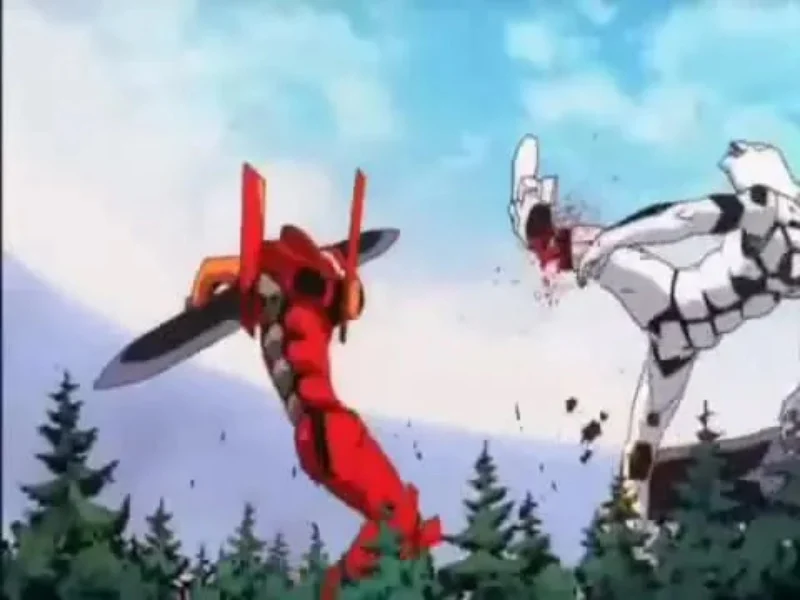 Асука сражается с девятью серийными EVA, пока выбор Синдзи толкает события к Инструментальности. В битве всё чаще используется оружие, ограничены возможности и происходят интенсивные воздушные бои, заставляющие Асуку тщательно управлять энергией Unit 02, пока не разрядится внешний аккумулятор. Анимация сочетает в себе традиционную ручную отрисовку с живыми съёмками и 3D-графикой, чтобы чётко показать траектории оружия и полётные пути.