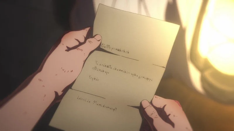 Violet Evergarden демонстрирует трогательную концепцию: письма матери, написанные перед её смертью, доставляются её ребёнку каждый год в день его рождения. Это подчёркивает силу Автоматических Кукол Памяти, позволяющих сохранить голос человека живым. Анимация прекрасно передаёт эмоциональное воздействие, используя такие детали, как дождь и свет фонарей, чтобы подчеркнуть физическое присутствие каждого написанного от руки письма. Последовательность, показывающая доставку писем с течением времени, тонко демонстрирует течение лет и непреходящую природу материнской любви.