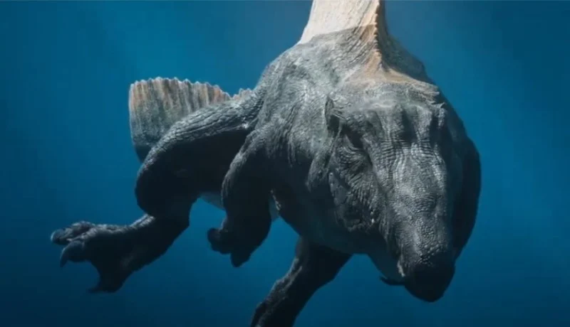 Спинозавр в фильме «Jurassic Park III» — грозный хищник, даже способный победить взрослого Тираннозавра рекса. Он безжалостно преследует людей по различным местностям, а последующие фильмы демонстрируют его впечатляющие навыки плавания. Это сильный пловец, который использует свои длинные руки в своих интересах и может преодолевать препятствия, которые останавливают других плотоядных динозавров. Его выносливость позволяет ему преследовать добычу в течение длительных периодов времени, не уставая. Эта комбинация способности плавать и грубой силы делает его уникально опасным наземным хищником.