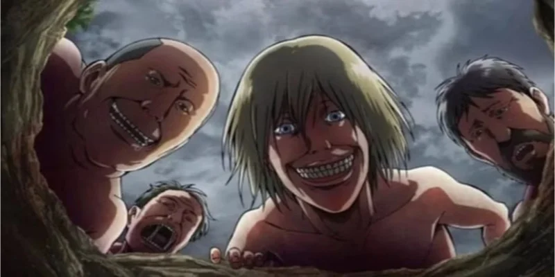Титаны — огромные, человекоподобные существа, которые едят людей и могут быстро исцеляться от практически любой раны, при этом заметно вырывается пар. Изначально они произошли от существ, называемых Подданными Имир, и у некоторых Титанов есть особые способности, такие как создание затвердевшей кожи или управление другими Титанами. Солдаты сражаются с ними, используя специализированное снаряжение, которое позволяет им быстро перемещаться в трех измерениях, а позже — оружие, предназначенное для поражения задней части шеи — единственного места, где Титаны действительно уязвимы. Как адаптация от Wit Studio, так и адаптация от MAPPA блестяще передают ужасающий масштаб и стремительный темп этих сражений, заставляя атаки на города ощущаться невероятно реальными и немедленными.
