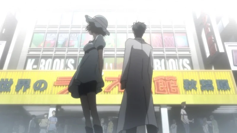 История начинается с незначительных, странных происшествий, связанных с сообщениями и микроволновыми печами, намекающих на путешествия во времени. Первая серия устанавливает место действия – Акихабара и Future Gadget Lab – и роли персонажей, когда они начинают экспериментировать. Она также представляет правила о том, что они могут наблюдать и как они могут общаться, что становится важным позже. Анимационная студия White Fox усиливает таинственную атмосферу тонкими визуальными деталями и преднамеренно неторопливым темпом.