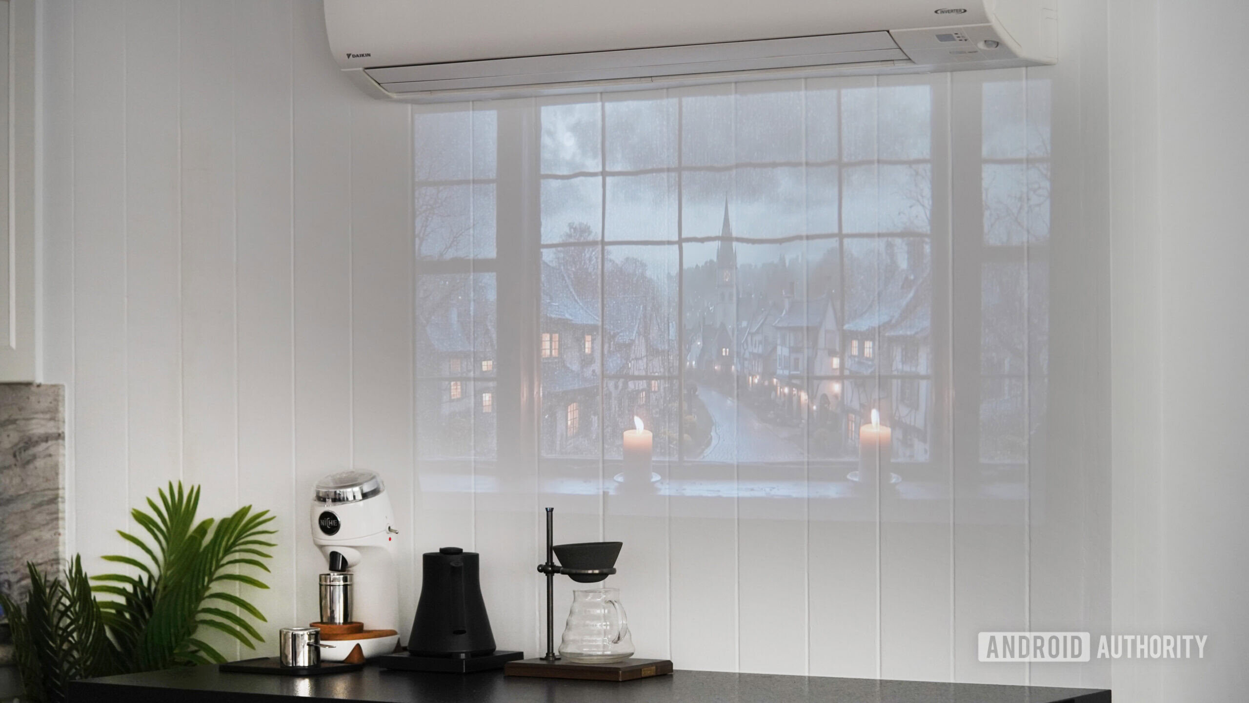 Среди моих любимых применений проектора — создание атмосферной обстановки. Я использовал его для демонстрации цифровых каминов зимой, когда настоящие камины встречаются редко на Гавайях, и для тематических визуальных эффектов на собраниях (например, ужин в духе детективного расследования без жутких эффектов не был бы таким же). Также я задумывался о создании слайд-шоу ко дню рождения, которые могут непрерывно проигрываться во время вечеринок, добавляя более динамичный элемент по сравнению с простыми фото экспозициями. Проекторы предоставляют простой способ изменить атмосферу комнаты без необходимости покупать декорации.