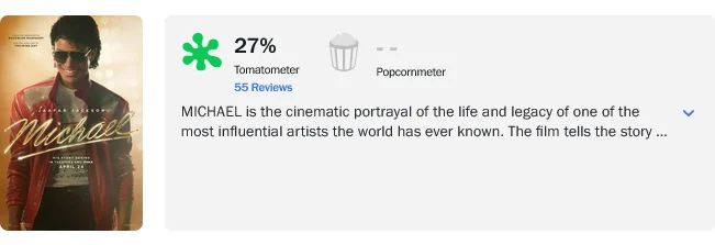 Новый фильм о Майкле не получил такого сильного старта, как многие предсказывали. Первые отзывы на Rotten Tomatoes дают ему низкий рейтинг около 27%, что делает его одним из самых низкооцененных музыкальных байопиков за последнее время.