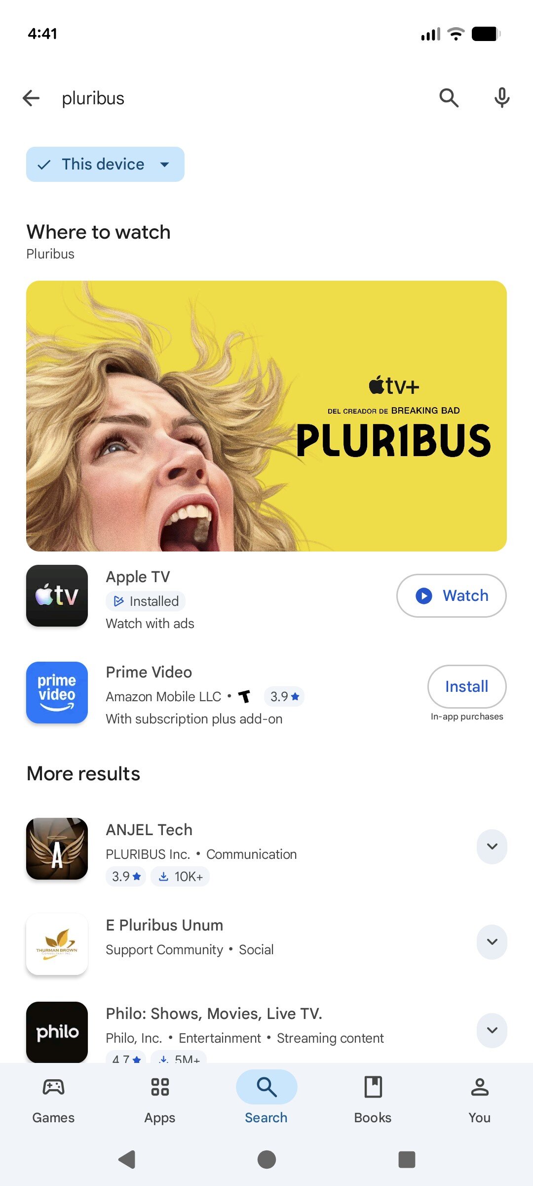 Google Play упрощает поиск, где можно посмотреть сериалы и фильмы. При поиске названия появится новая карточка, показывающая, в каких приложениях он доступен. Если у вас не установлены эти приложения, вы сможете установить их непосредственно из этой карточки.