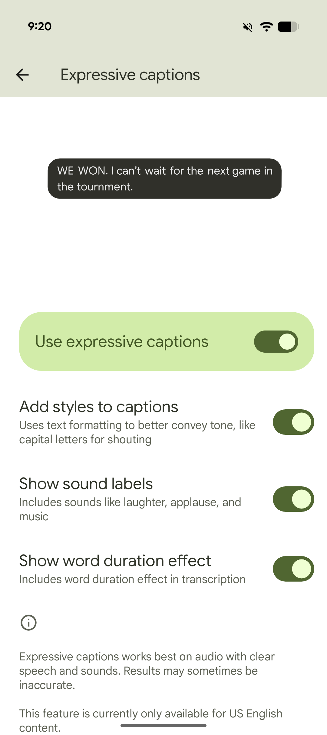 Google переименовал опцию «Показать эффект длительности слова» на странице Выразительные субтитры в «Продлить длительность слова», предоставив обновленное объяснение, которое делает цель опции яснее.