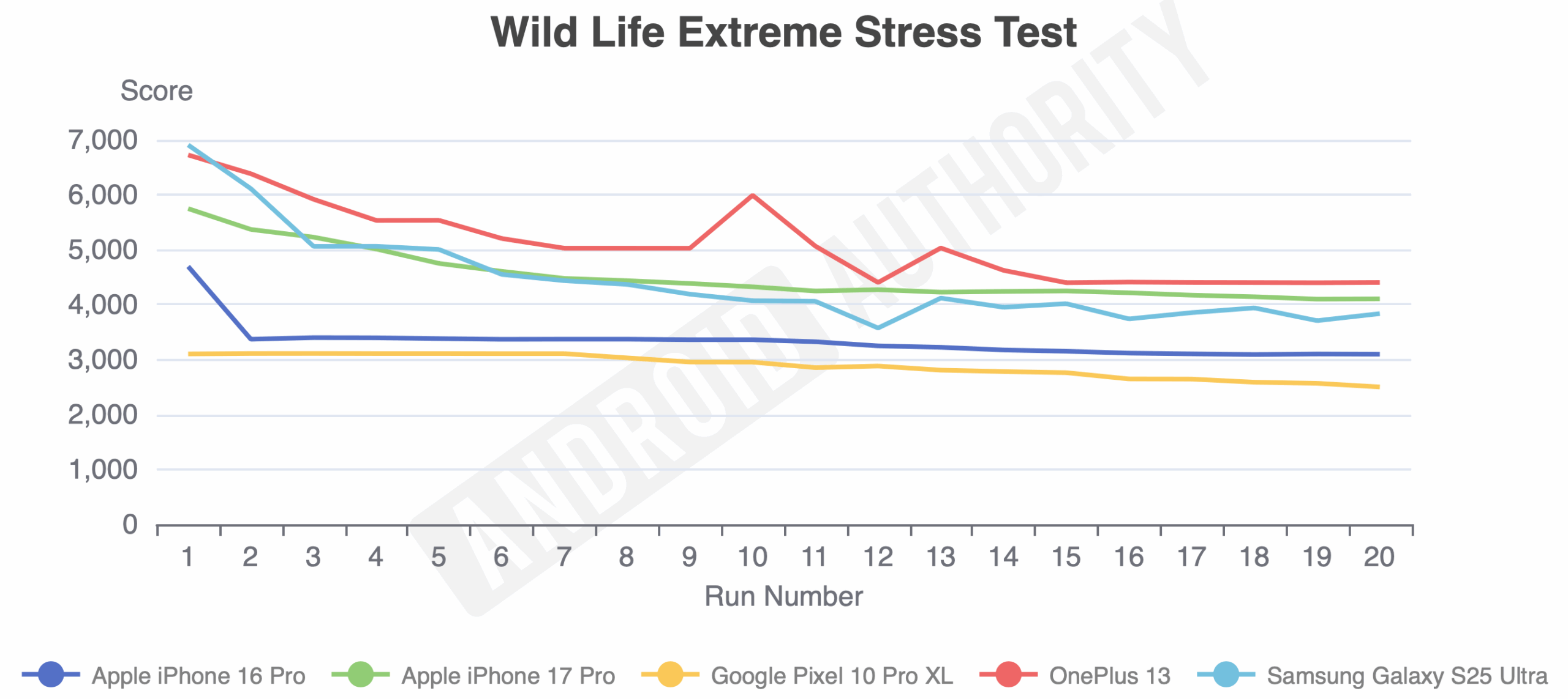 В почти каждом тесте этот телефон показал плохие результаты, даже хуже, чем предыдущая модель. Он обогнал Pixel 10 Pro XL только однажды, при воспроизведении 4K-видео. Я повторил тесты, потому что результаты были настолько удивительными, и представленные оценки являются лучшими из двух попыток. Я предвидел проблемы с батареей у более тонкого iPhone Air, но был шокирован увидеть такую слабую производительность от обычно мощного iPhone Pro. Хотя его батарея меньше, чем у многих Android-телефонов, Apple обычно компенсирует это эффективной оптимизацией – чего я здесь не увидел.