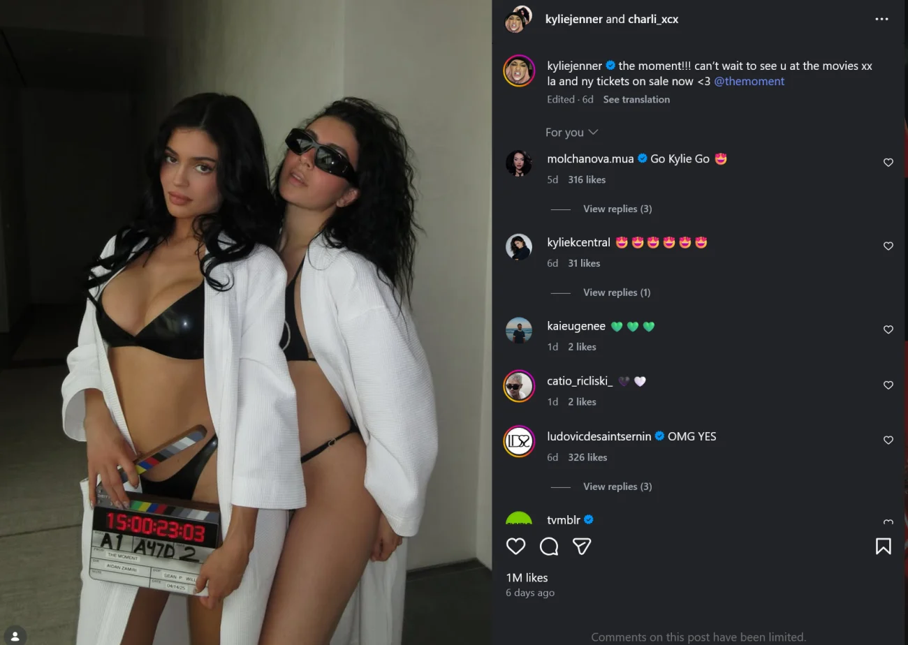 Кайли Дженнер, известная своей активностью в социальных сетях и линией Kylie Cosmetics, недавно поделилась потрясающей фотографией себя в черном бикини в Instagram. В других новостях, звезда реалити-шоу расширяет свою карьеру и появится в новом фильме A24, The Moment, вместе с певицей Charli XCX.