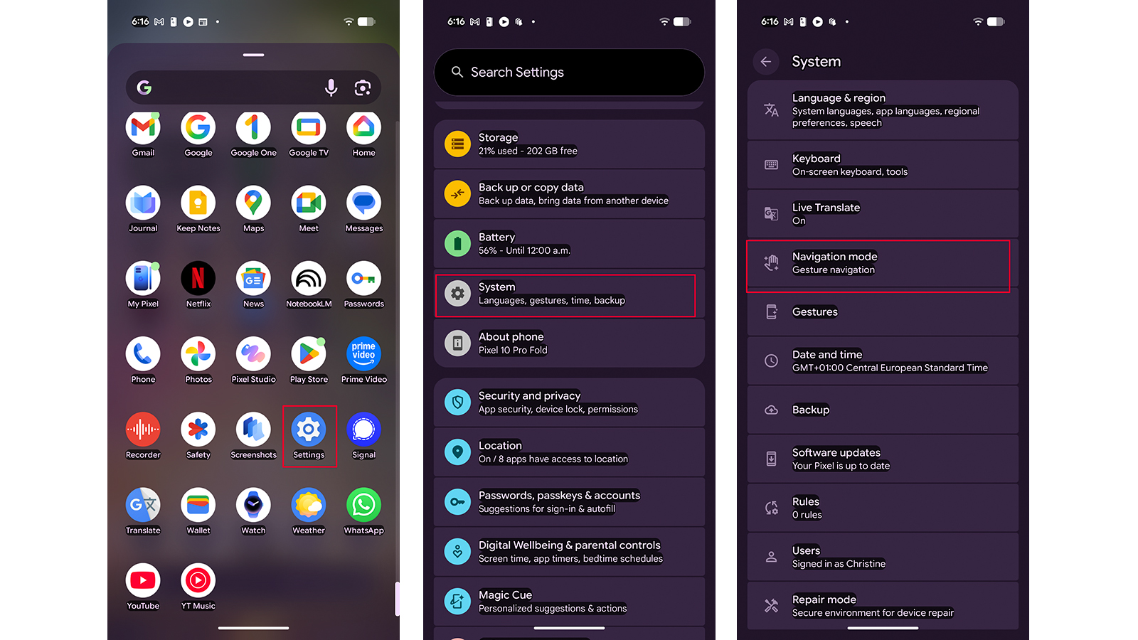 Чтобы переключаться между навигацией жестами и кнопками, нажмите на точку рядом с предпочтительным методом. Нажатие на точку рядом с ‘Three-button navigation’ отобразит кнопки и отключит жесты. И наоборот, нажатие на точку рядом с ‘Gesture navigation’ включит жесты и скроет кнопки.