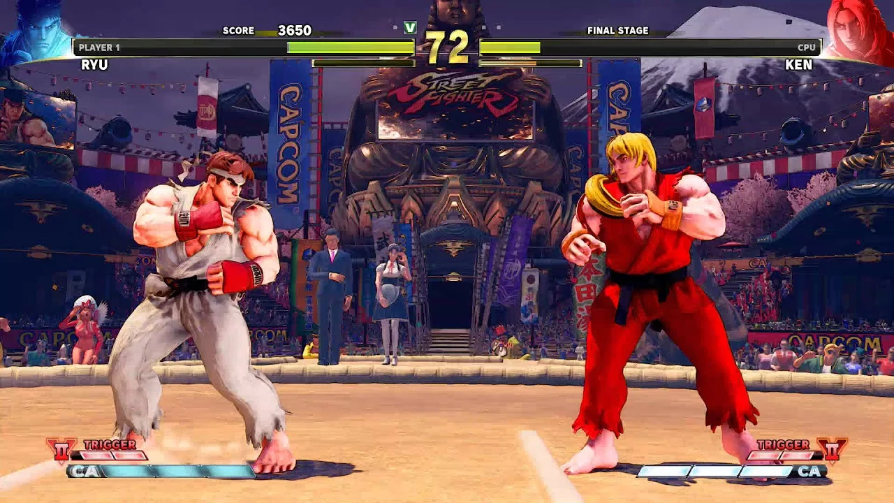 Рю и Кен, впервые появившиеся в Street Fighter и полностью разработанные в Street Fighter II, спроектированы с похожими базовыми приемами — Хадокен, Сёрюкен и Тацумаки Сенпуукяку. Однако, такие детали, как время, дальность и потенциал комбо меняются от игры к игре. Этот подход ‘похожий, но не идентичный’ помогает игрокам изучать основные навыки, такие как контроль пространства, защита от атак и управление шкалами специальных приемов. Сюжеты игр часто представляют их сражения как способ для обоих персонажей улучшить свои навыки. Обновления в различных частях Street Fighter (Alpha, III, IV, V и 6) добавляли новые способности и системы, сохраняя при этом поучительный характер их соперничества. Поскольку они часто сталкиваются друг с другом на турнирах и в аркадах, их бой служит реальной площадкой для тестирования основных механик игры.