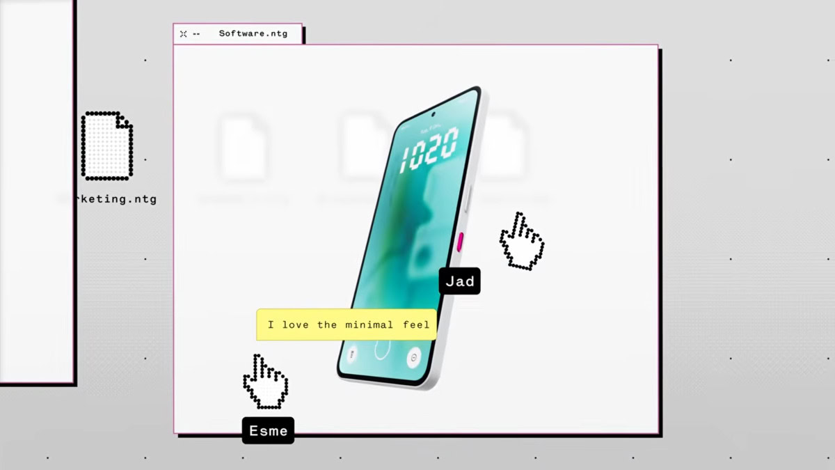 Самой заметной особенностью этого устройства является его уникальная цветовая схема: полупрозрачная бирюзовая задняя панель, акцентированная вкраплениями розового и жёлтого. Ничто не объясняет, что этот дизайн был вдохновлен стилем конца 90-х и начала 2000-х годов, стремясь к ретро-футуристическому виду. Фанаты также разработали специальные часы для экрана блокировки, которые меняются при включении устройства, и созданы новые обои, чтобы дополнить отличительную заднюю панель телефона.