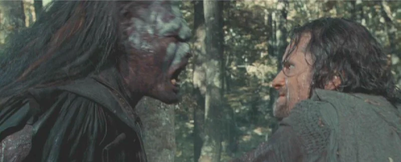Как заядлый киноман, я был действительно поражён схваткой между Арагорном и Луртцем. Удивительно, как монтаж подчёркивает жестокость — вы видите кровь и грязь, размазывающиеся по их лицам и доспехам, и узоры буквально *меняются* с каждым быстрым переходом. Например, полоса крови на щеке выглядит темнее одну секунду, а затем светлее в следующую, когда меняется угол съёмки. А брызги на груди Луртца? Они буквально трансформируются между кадрами ударов и его реакциями. Это настолько ощутимая и эффективная деталь — настоящее свидетельство того, как монтаж может добавить так много к сцене. Речь идёт не просто о том, чтобы показать бой, а о том, чтобы заставить вас почувствовать его. По-настоящему гениально.