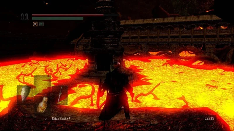 После того, как вы потерпели поражение и вернулись на арену, Bed of Chaos оставляет свои сломанные корни на месте. Это позволяет вам уничтожить ядра с обеих сторон отдельными попытками, но также создает опасные ямы, которые могут мгновенно убить вас. Широкие атаки босса часто толкают вас в эти ямы, даже когда кажется, что вы успешно уклонились. Вы можете получить доступ к центральному ядру только после уничтожения боковых корней, что показывает, как арена меняется с каждой смертью и восстанавливается.