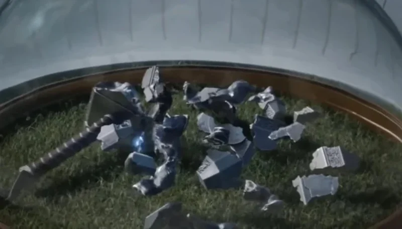 Когда Хела уничтожает молот Тора в Норвегии, осколки не остаются согласованными между кадрами. Их положение смещается на земле, и даже их размер и расстояние между ними меняются. Маркировка на асфальте вокруг фрагментов молота также выглядит по-разному в каждом кадре.