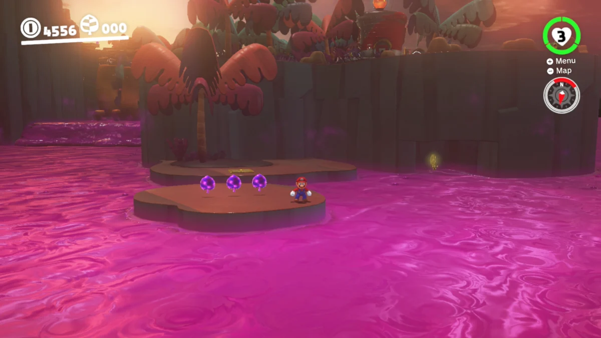 Каждое королевство имеет свои уникальные фиолетовые монеты, которые можно использовать только в магазине этого королевства. Поскольку количество этих монет ограничено, легко пропустить костюмы, наклейки и сувениры, если не собрать их, находясь там. Вы часто будете находить их вдоль основного пути, на платформах, на которые вы все равно прыгаете, или рядом с важными местами истории. Лучше всего собирать их во время исследования! Обратите внимание на группы монет возле контрольных точек, за кораблем Odyssey и в 2D-секциях. Если вы уже покинули область, проверьте свою карту на наличие неисследованных мест и используйте свой бинокль, чтобы увидеть фиолетовый блеск монет издалека.