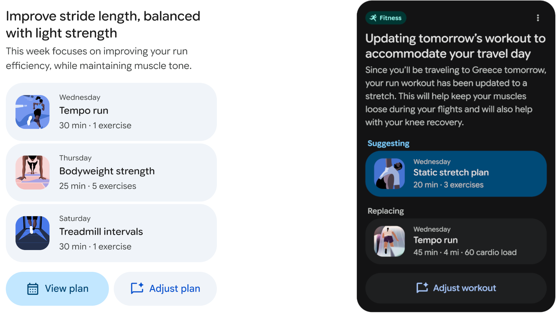 Я слежу за работой Fitbit над действительно интересной функцией – они пытаются создать персонализированного тренера по здоровью и фитнесу. Идея заключается в том, что он дает вам не просто план тренировок, а такой, который адаптируется к вашей жизни. Так, если вы получили травму, вам нужно путешествовать или просто очень загруженная неделя, план меняется вместе с вами. Он работает на основе Gemini от Google, но использует не только одну версию технологии. Вместо этого он разумно выбирает различные AI модели в зависимости от происходящего, предоставляя вам более индивидуальный опыт.