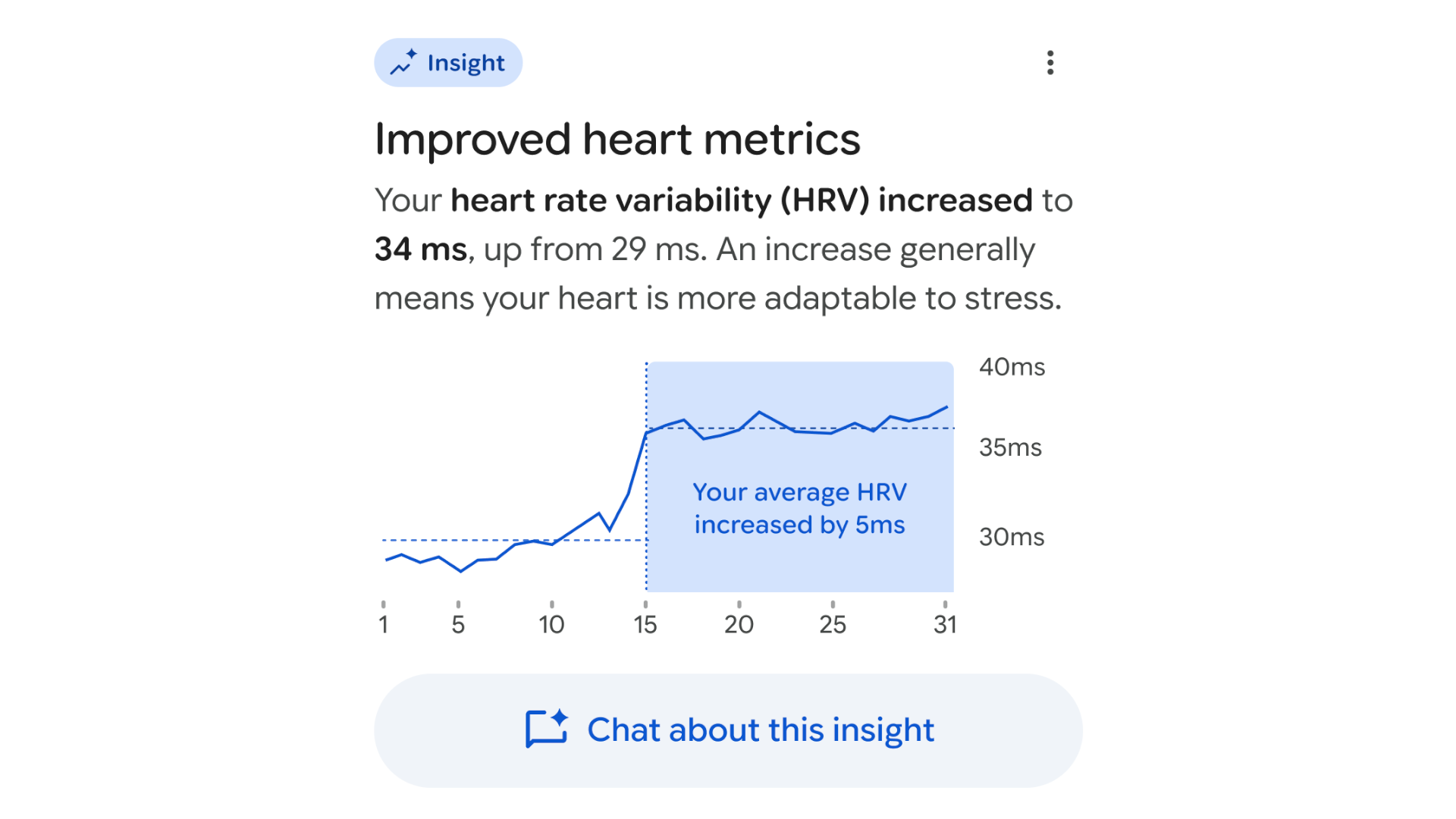 Новый личный тренер по здоровью Fitbit выделяется среди других AI-ассистентов, потому что он фокусируется на *вас*. Вы можете легко попросить его предоставить подробное резюме ваших данных о здоровье или получить представление об определенных тенденциях, таких как вариабельность вашего сердечного ритма.