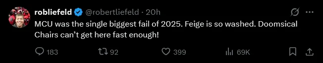 Роб Лифельд долгое время публично критиковал Marvel, и его проблемы выходят за рамки просто фильмов. Он конкретно раскритиковал Кевина Фейга, заявив, что Marvel Cinematic Universe — «самый большой провал 2025 года» и что Фейг потерял хватку. Эта критика последовала за тем, что Marvel переживает самые слабые кассовые сборы за последние годы, и 2025 год, похоже, станет первым годом с 2011 года без супергеройского фильма среди 10 лучших мировых релизов.
