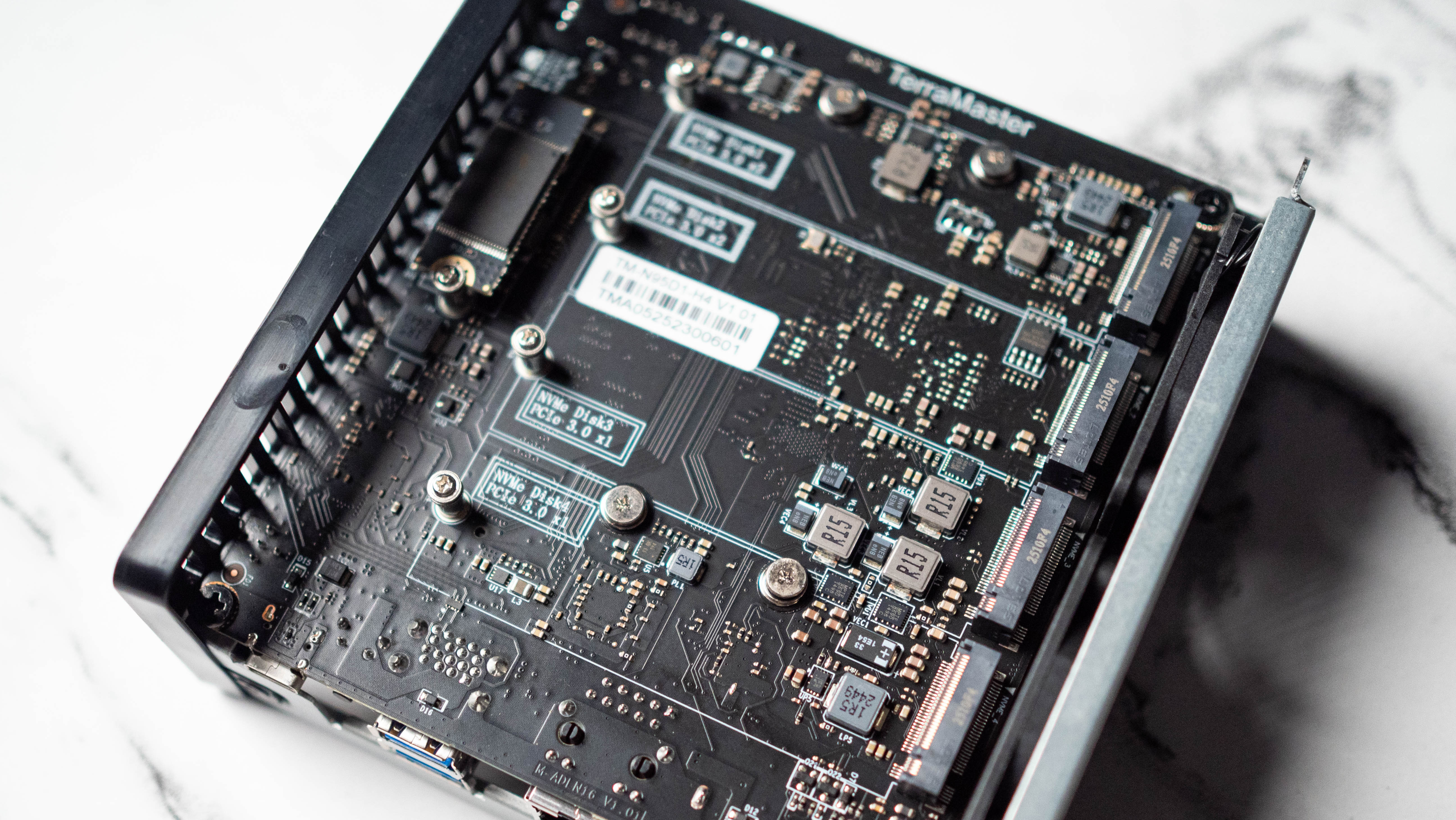 F4 SSD очень похож на F8 SSD, использующий ту же платформу Intel N95 и 8 ГБ оперативной памяти. Основные различия заключаются в том, что F4 имеет порт 5GbE вместо порта 10GbE, и он включает четыре слота M.2 SSD вместо восьми. В остальном, внутренние компоненты практически идентичны.