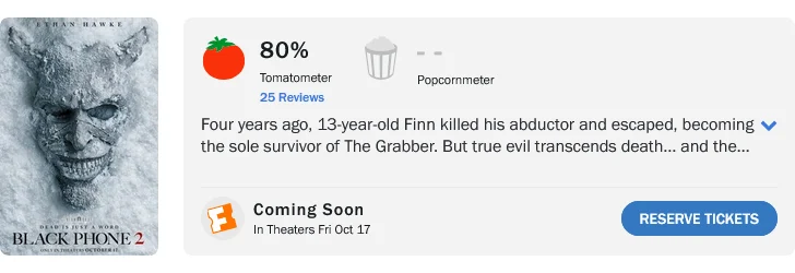 В преддверии выхода в США, ‘The Black Phone 2‘ привлекает внимание, в настоящее время имея 80% рейтинг одобрения на Rotten Tomatoes после 25 рецензий.