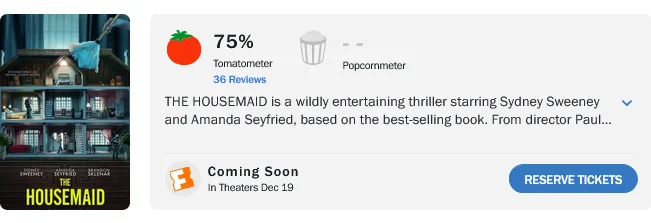 Фильм «The Housemaid» выйдет в прокат в США от Lionsgate 19 декабря.