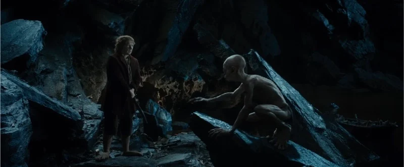 Бильбо неожиданно спрашивает о чем-то в своем кармане, нарушая правила их игры, но в конечном итоге это позволяет ему сбежать. Эта встреча раскрывает, что существо Голлум когда-то владел Кольцом, и тонко связывает мирный дом Бильбо, Шир, с древней историей Второй Эпохи – историей, которая станет центральной в событиях ‘The Lord of the Rings’.