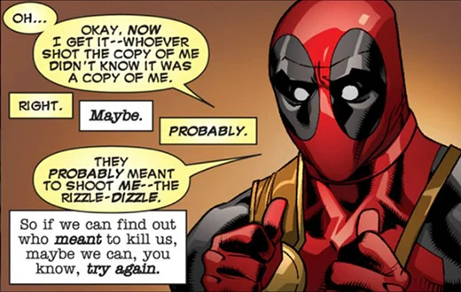 Дэдпул уникален тем, что он осознаёт, что находится в комиксе. Он часто разрушает четвёртую стену, комментируя саму историю, способ её представления в панелях и даже людей, которые её создают. Он будет напрямую обращаться к читателям, шутить об истории комиксов во время происходящего и игриво манипулировать такими вещами, как звуковые эффекты или то, как оформлены страницы, чтобы повлиять на сцену.