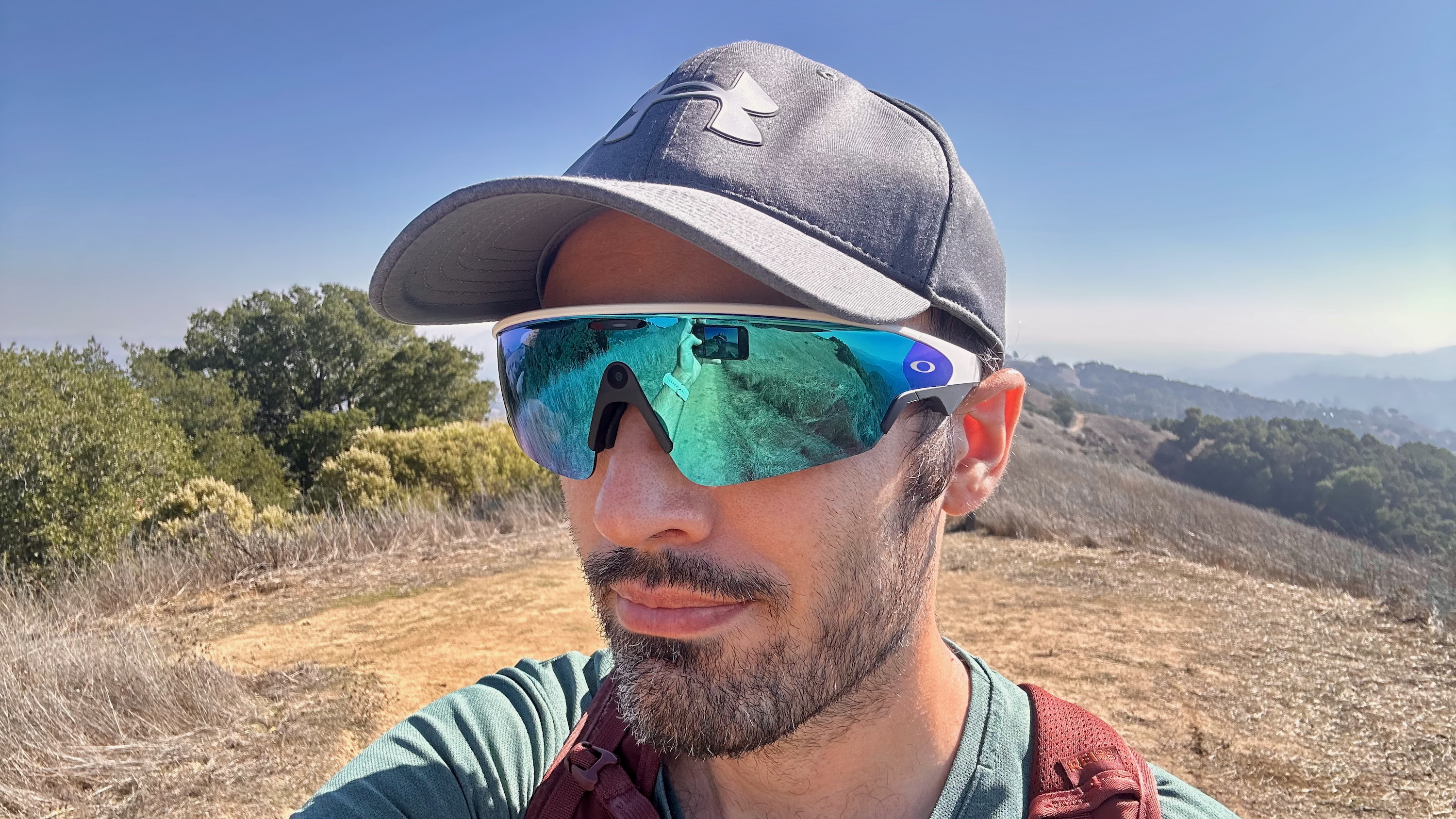 Я надел свои Oakley Meta Vanguards во время похода и сделал несколько фотографий природы. Позже я заметил, что моя шляпа случайно попала в некоторые кадры, но на фотографиях все равно хорошо видно широкий угол обзора и возможность четко запечатлевать быстро движущиеся объекты, такие как собака или гриф, с очень небольшим размытием.
