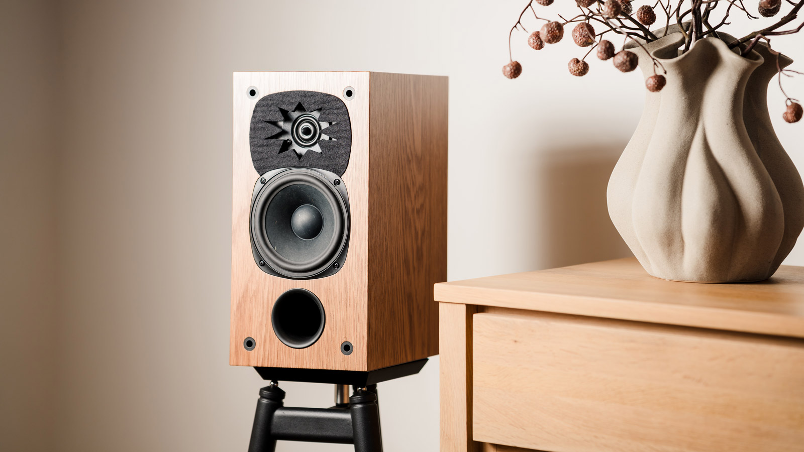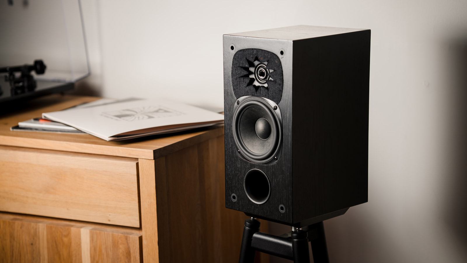 Эти колонки оснащены двухполосной конструкцией с системой басового рефлекса. В них используется 130-мм басовый/среднечастотный динамик, изготовленный из натуральных волокон от SB Acoustics, в сочетании с высокочастотным динамиком Peerless XT25, который объединяет как высокие, так и средние частоты в одном блоке. VAF выбрал этот высокочастотный динамик, потому что он хорошо работает как непосредственно перед слушателем, так и с боков, помогая заполнить комнату звуком. Высокочастотный динамик слегка углублен в корпус колонки, чтобы обеспечить одновременное поступление звука от обоих динамиков к вашим ушам. Басовый/среднечастотный динамик построен на прочной вентилируемой металлической раме, чтобы свести к минимуму нежелательные вибрации и снизить искажения за счет выпуска внутреннего давления воздуха.