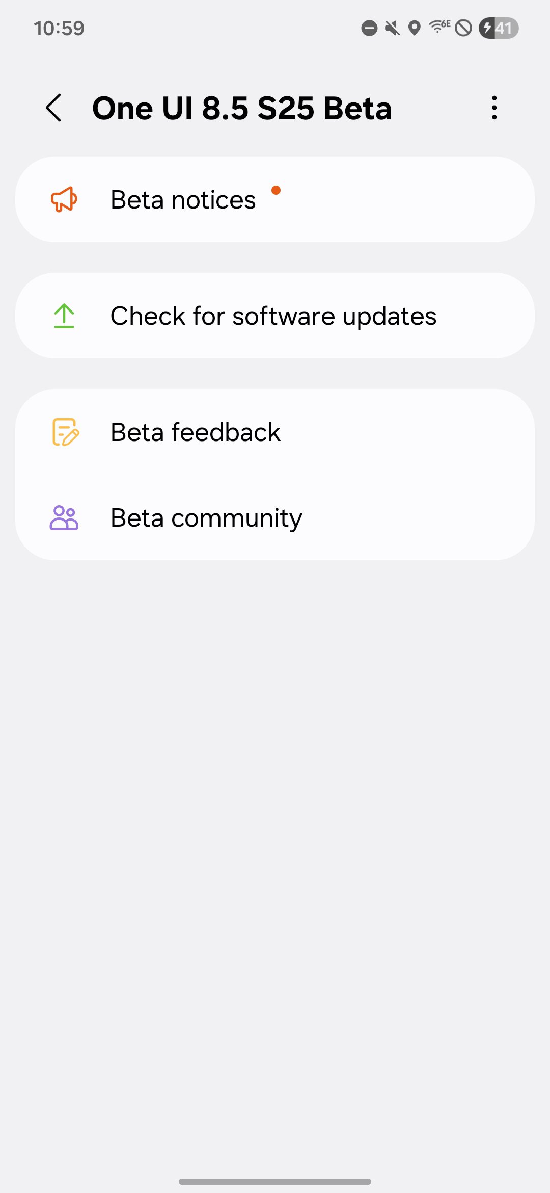 Если вы присоединились к бета-программе, но не получаете обновление One UI 8.5, попробуйте выйти из неё и снова присоединиться. Для этого перейдите на страницу Beta Program, нажмите на три точки в правом верхнем углу, выберите «Beta program settings» и затем нажмите «Withdraw from beta program».