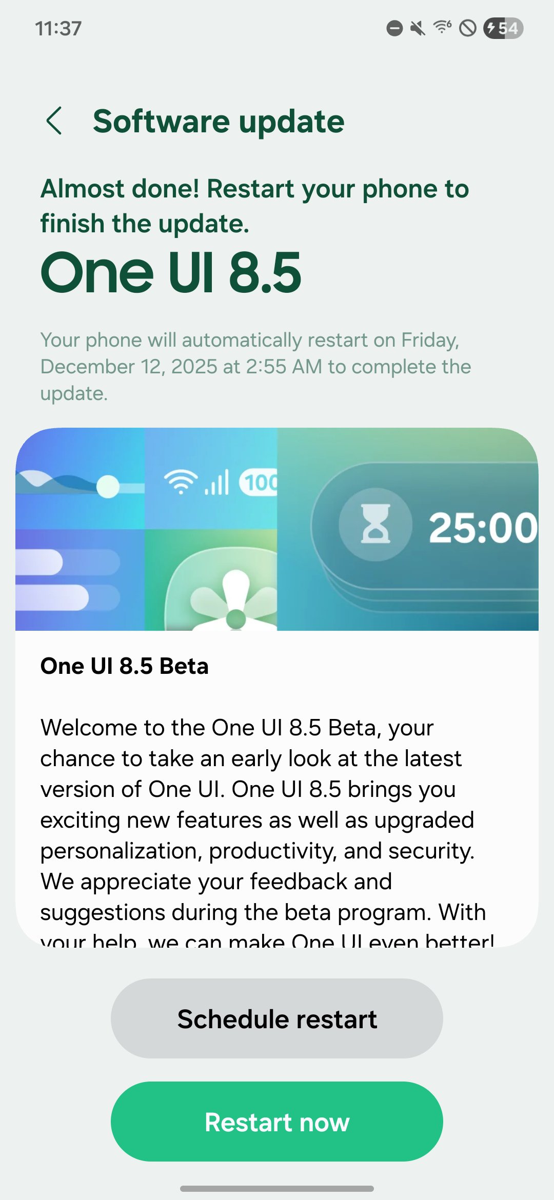 Вот и всё! Обновление может занять несколько мгновений для загрузки, но после установки и перезагрузки телефона вы будете использовать One UI 8.5. Просто имейте в виду несколько моментов.