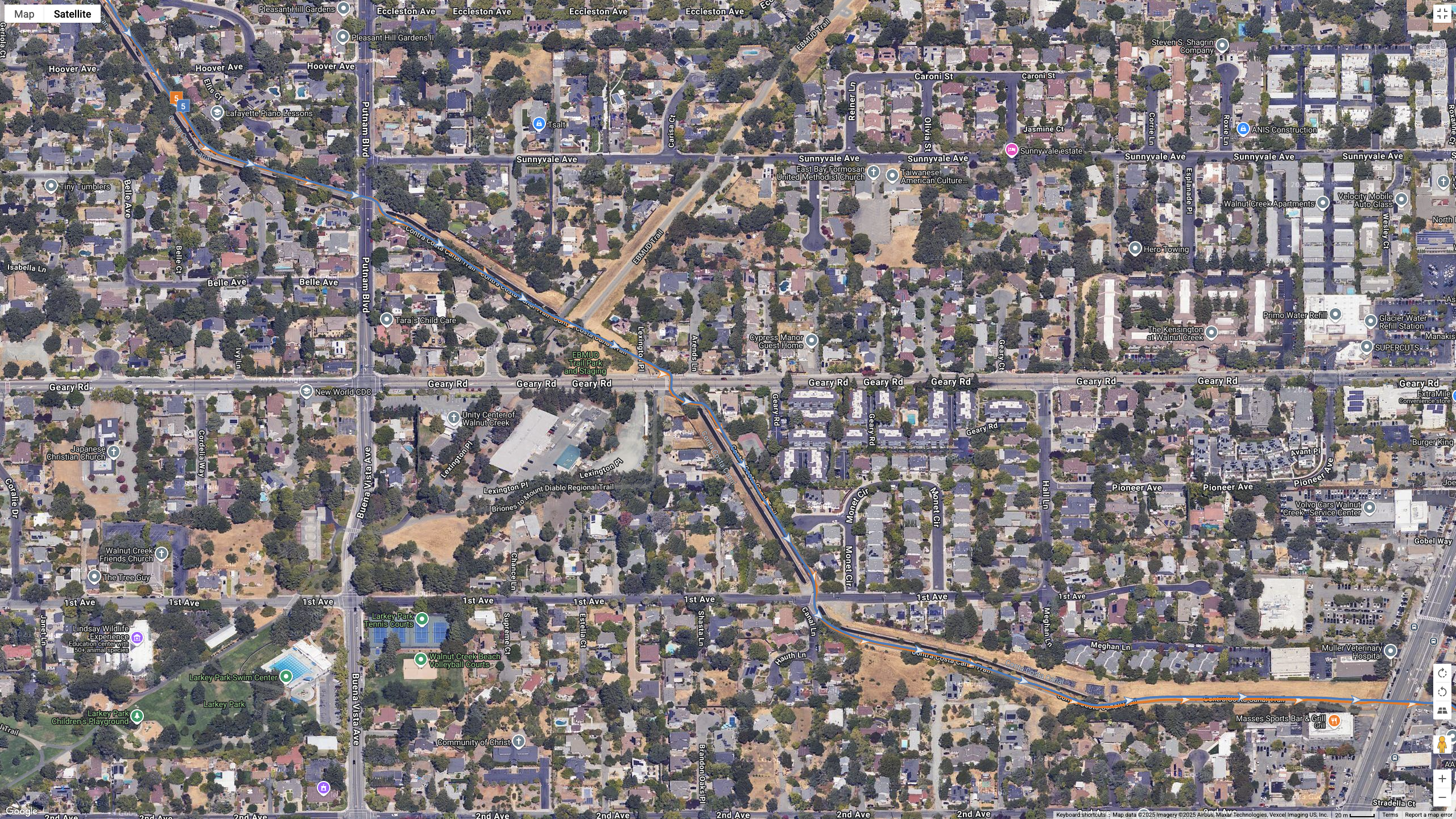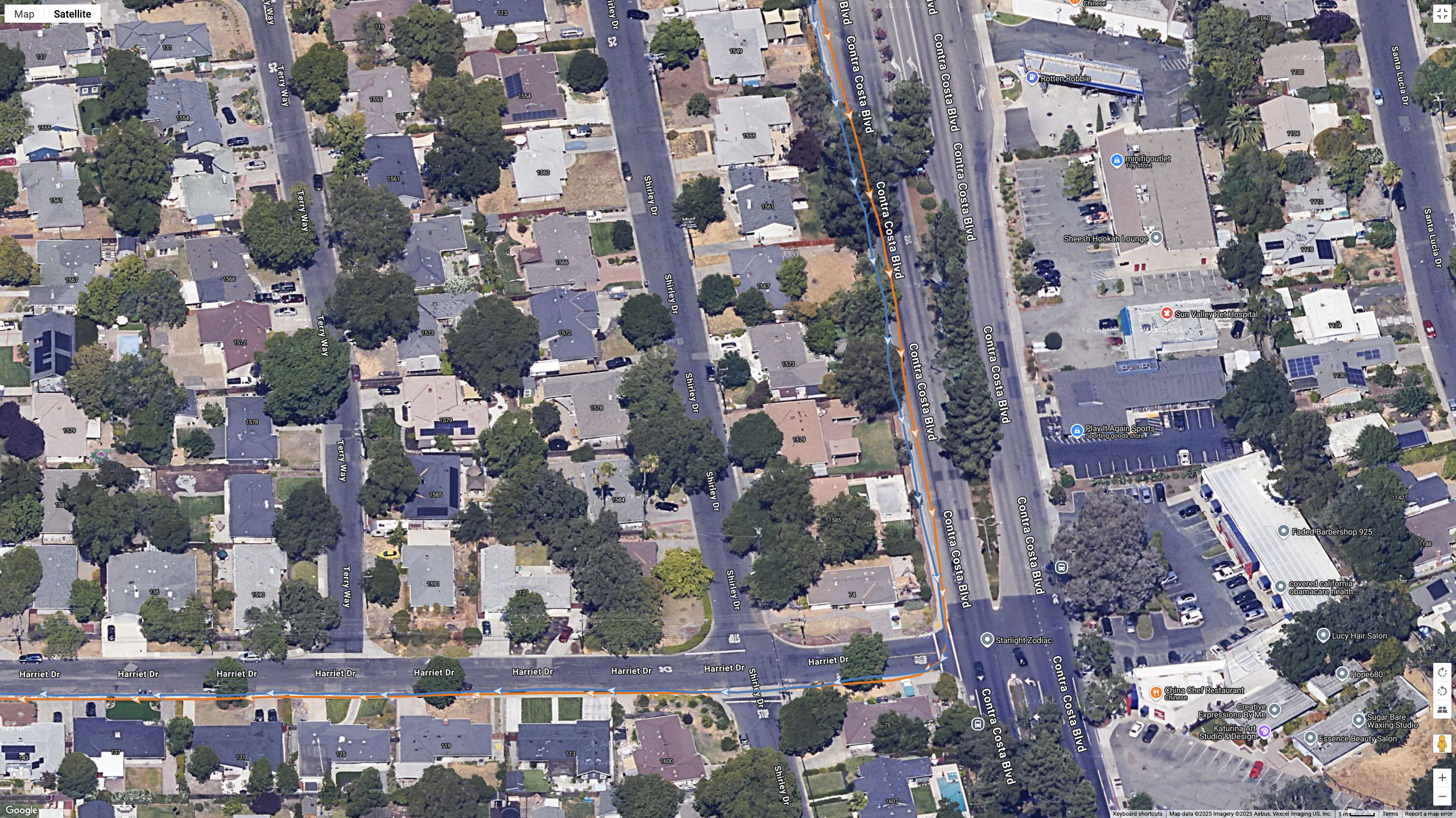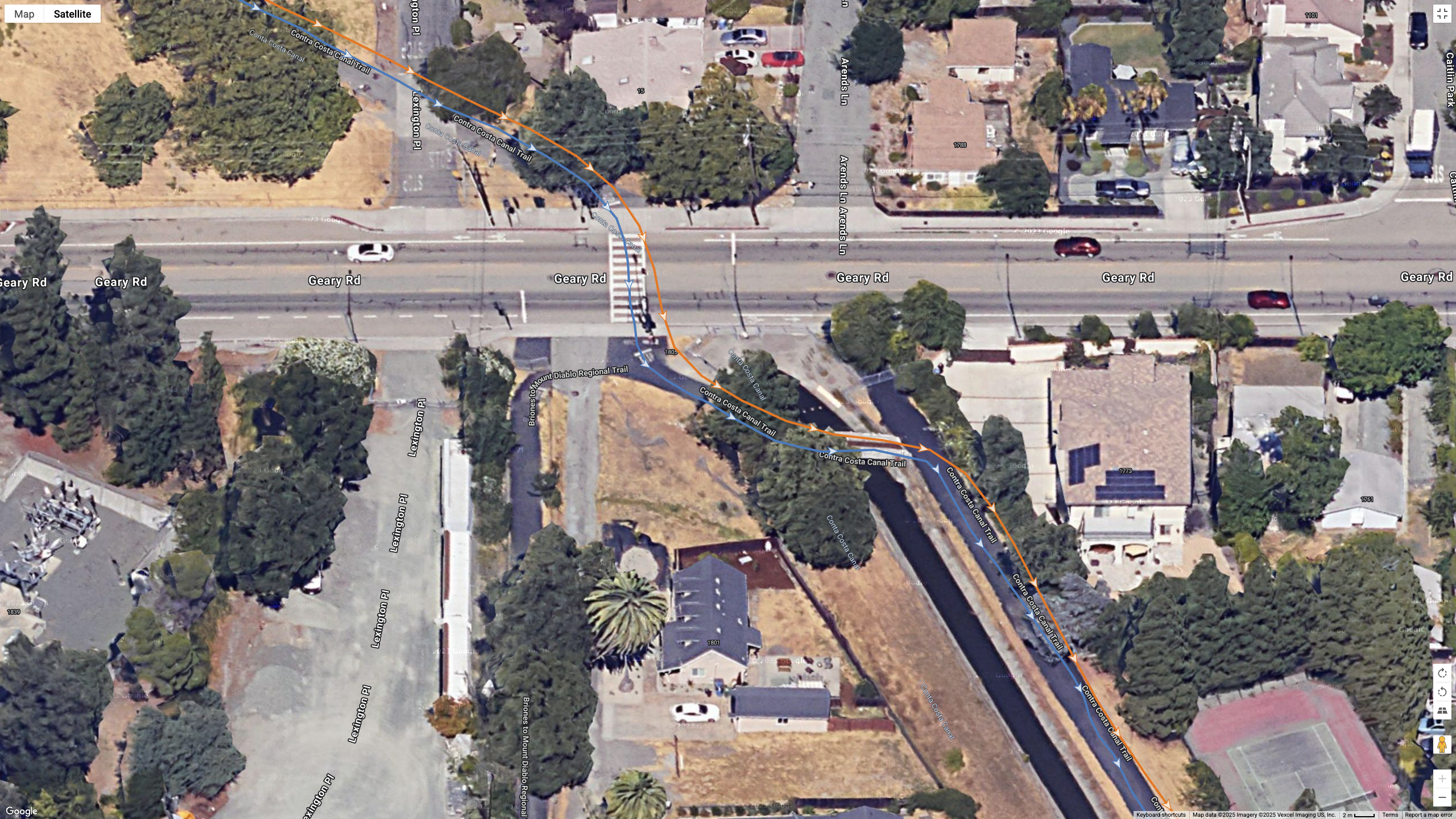 Обычно оранжевый PACE 4 отслеживает маршрут вместе с синим Forerunner 970, хотя иногда он отклоняется на метр-два от моего фактического маршрута, иногда смещаясь к улице или другой стороне тропы. На извилистой тропе эти отклонения обычно нивелируются, а технология двойной частоты PACE 4 помогает ему оставаться точным даже под деревьями.