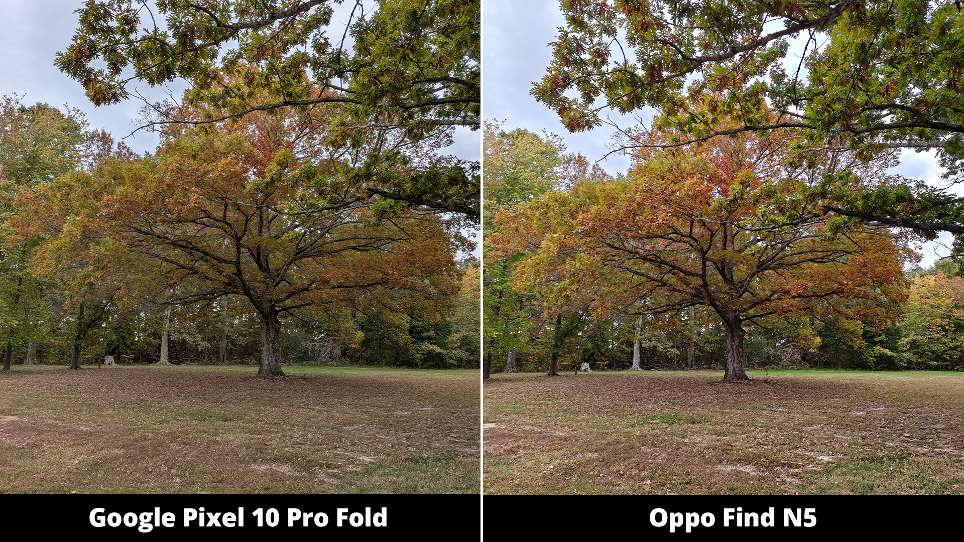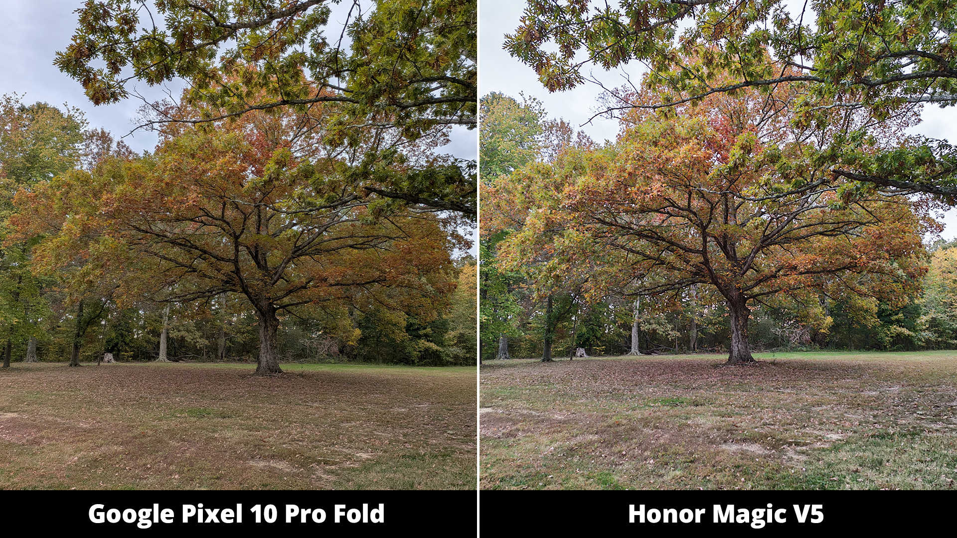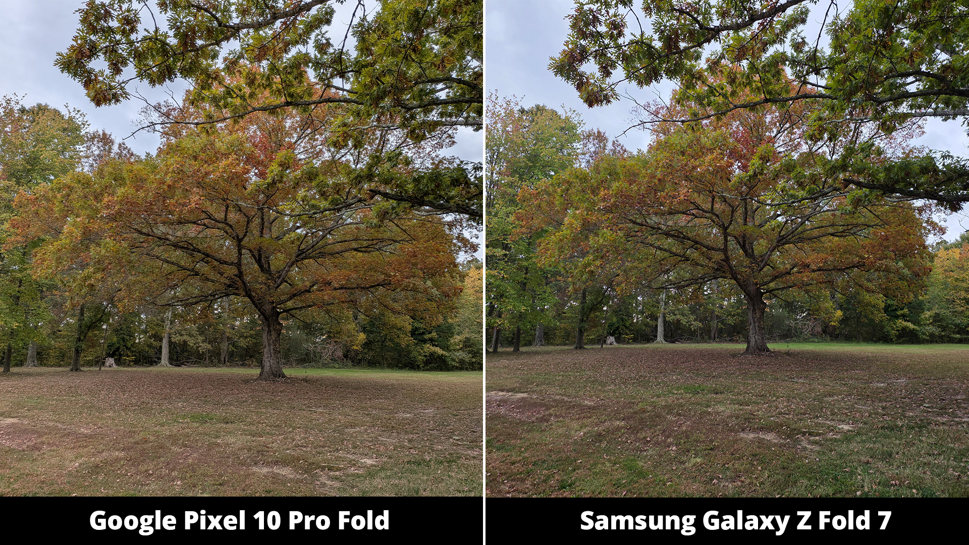 Я немного не уверен насчет дерева на фотографии. Само дерево не сильно отличается между двумя снимками, но трава позади него явно показывает разницу. Честно говоря, это было сложно оценить, потому что оба телефона действительно хорошо запечатлели сцену и точно отразили то, что я видел.