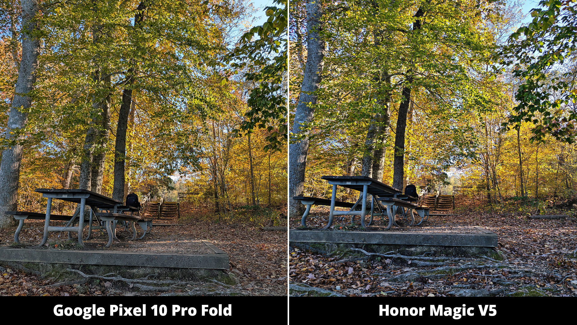 Глядя на фотографию скамейки в парке, действительно поражает, насколько она отличается – почти как будто она была сделана на другом телефоне. Magic V5 произвёл немного более яркое изображение, чем Pixel, но, что важно, не потерял никакой детали на фоне. Честно говоря, если бы мне пришлось выбирать между ними, основываясь на этой фотографии, это была бы подбрасывание монеты – я был бы доволен любым результатом.